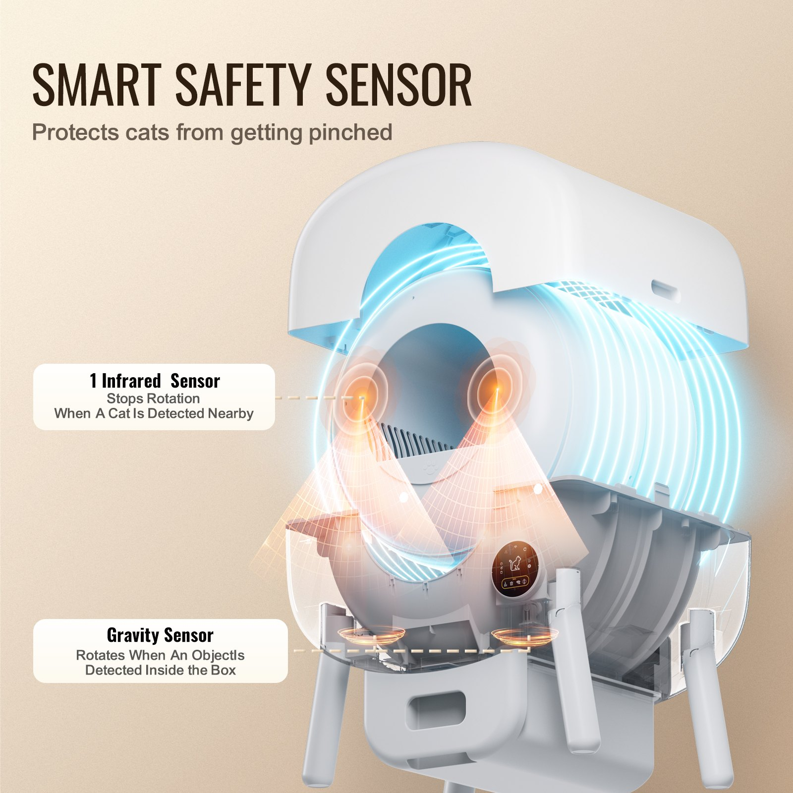 VEVOR 75L Self Cleaning Cat Litter Box with Odor Removal APP Control Sensor Gray
