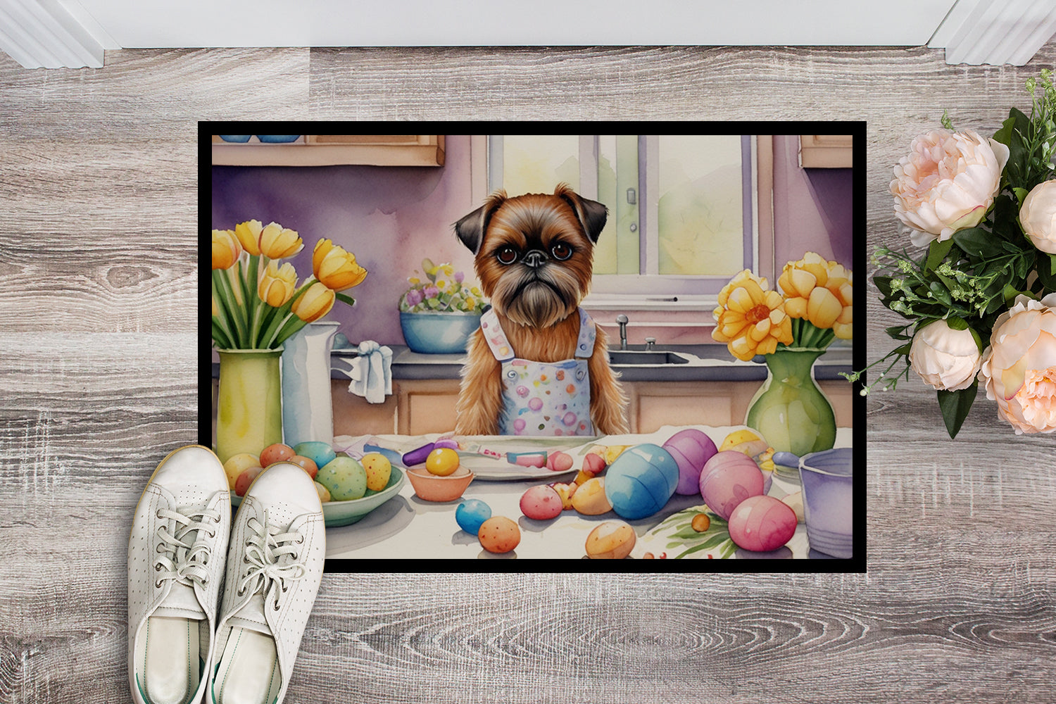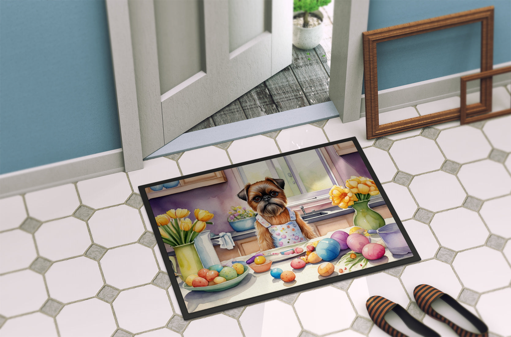 Doormat featuring breed specific Brussels Griffon artwork. Celebrate Easter with this Easter Doormat. Welcome your guests in style with our Artwork Door Mat, designed to withstand almost any weather condition. This mat, measuring approximately 24 by 36 inches, is held together by durable black binding tape. Its top layer, composed of polyester felt, is dyed with the eye-catching image you see on the mat. A few layers below provide the mat with stability, while its rubber bottom is stamped to help prevent slipping and ensures safety. Our mat works wonderfully as both an indoor or outdoor door mat. For cleaning, simply hose it off with water or use a power washer - no need for any cleaner that produces suds. Avoid scrubbing with a brush, instead, opt for the vacuum on floor setting. Designed manufactured and printed in the USA, this mat is a perfect addition to your porch, outdoor kitchen, entryway, or any indoor space. Its unique design makes it a charming decorative rug that greets your guests and adds a stylish touch to your home decor.