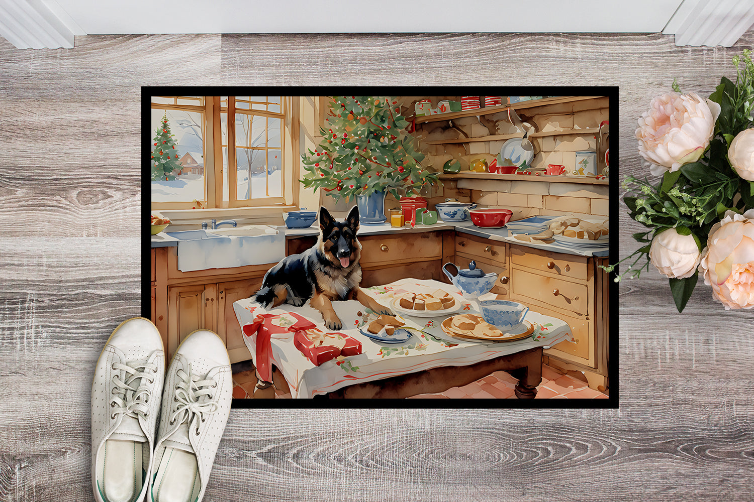 Doormat featuring breed specific German Shepherd artwork. Celebrate Christmas with this Christmas Doormat. Welcome your guests in style with our Artwork Door Mat, designed to withstand almost any weather condition. This mat, measuring approximately 24 by 36 inches, is held together by durable black binding tape. Its top layer, composed of polyester felt, is dyed with the eye-catching image you see on the mat. A few layers below provide the mat with stability, while its rubber bottom is stamped to help prevent slipping and ensures safety. Our mat works wonderfully as both an indoor or outdoor door mat. For cleaning, simply hose it off with water or use a power washer - no need for any cleaner that produces suds. Avoid scrubbing with a brush, instead, opt for the vacuum on floor setting. Designed manufactured and printed in the USA, this mat is a perfect addition to your porch, outdoor kitchen, entryway, or any indoor space. Its unique design makes it a charming decorative rug that greets your guests and adds a stylish touch to your home decor.