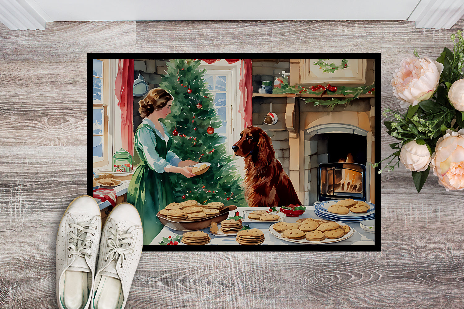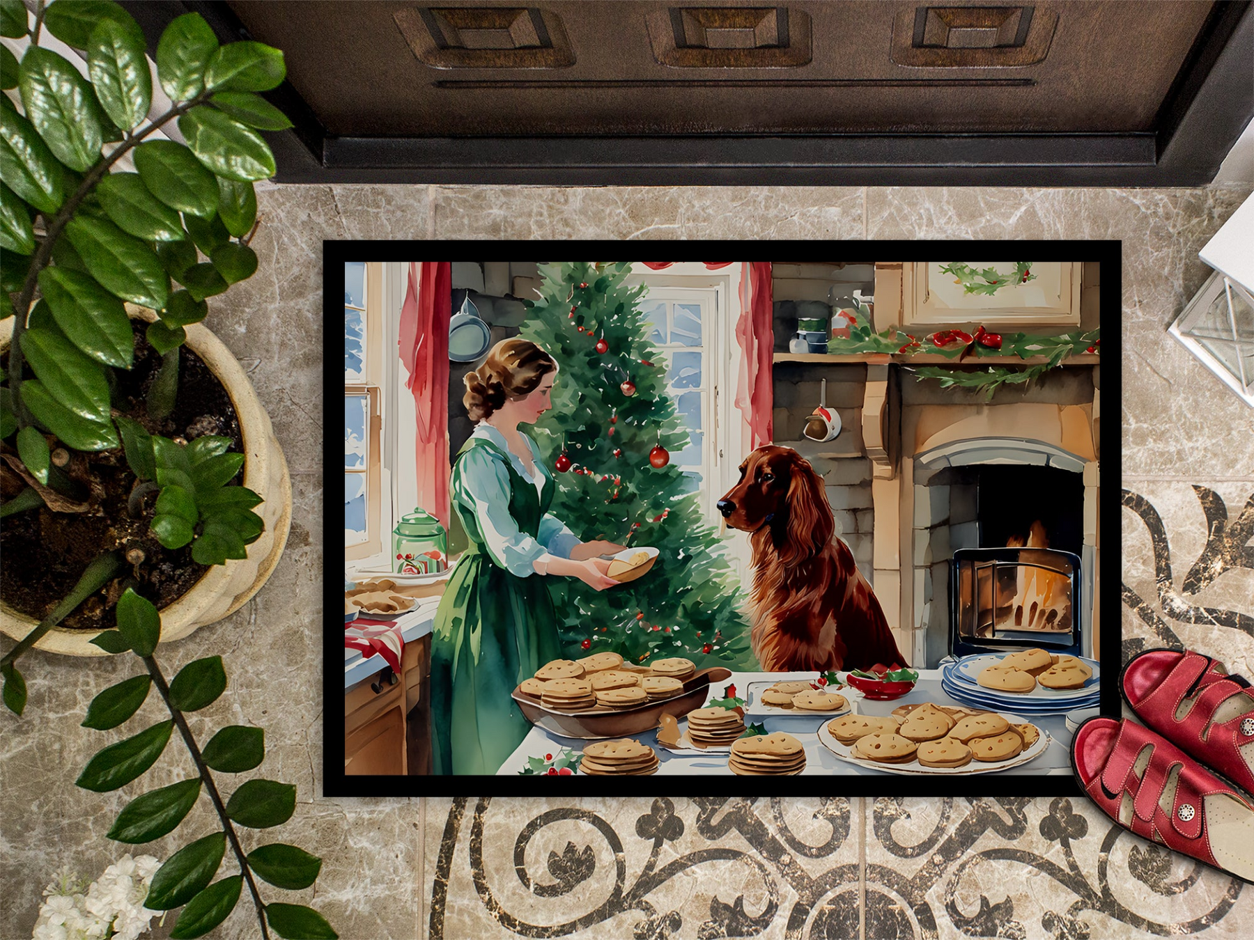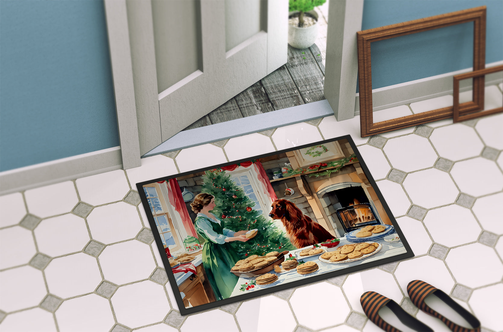 Doormat featuring breed specific Irish Setter artwork. Celebrate Christmas with this Christmas Doormat. Welcome your guests in style with our Artwork Door Mat, designed to withstand almost any weather condition. This mat, measuring approximately 24 by 36 inches, is held together by durable black binding tape. Its top layer, composed of polyester felt, is dyed with the eye-catching image you see on the mat. A few layers below provide the mat with stability, while its rubber bottom is stamped to help prevent slipping and ensures safety. Our mat works wonderfully as both an indoor or outdoor door mat. For cleaning, simply hose it off with water or use a power washer - no need for any cleaner that produces suds. Avoid scrubbing with a brush, instead, opt for the vacuum on floor setting. Designed manufactured and printed in the USA, this mat is a perfect addition to your porch, outdoor kitchen, entryway, or any indoor space. Its unique design makes it a charming decorative rug that greets your guests and adds a stylish touch to your home decor.