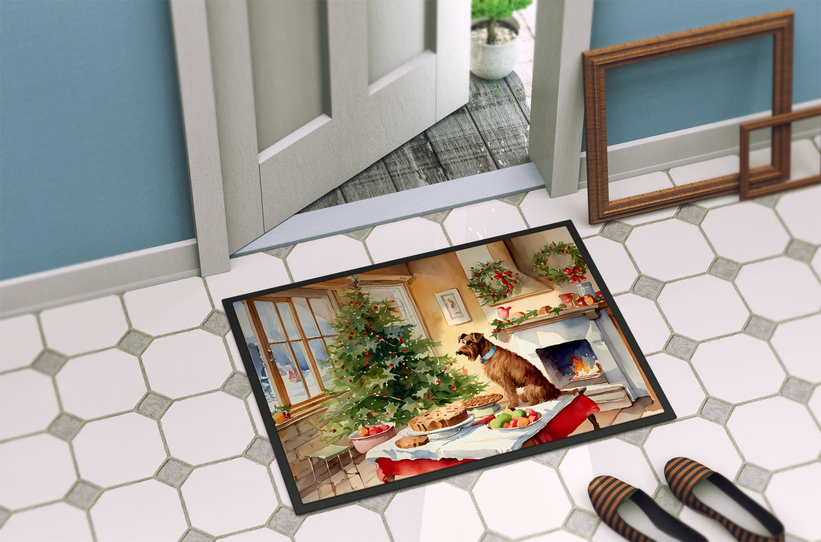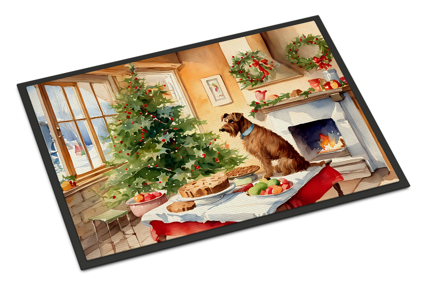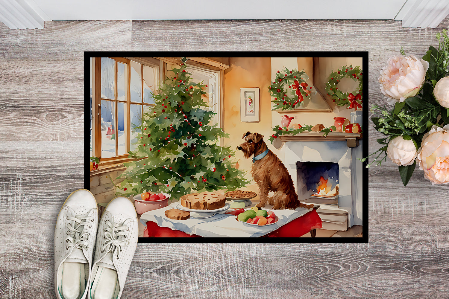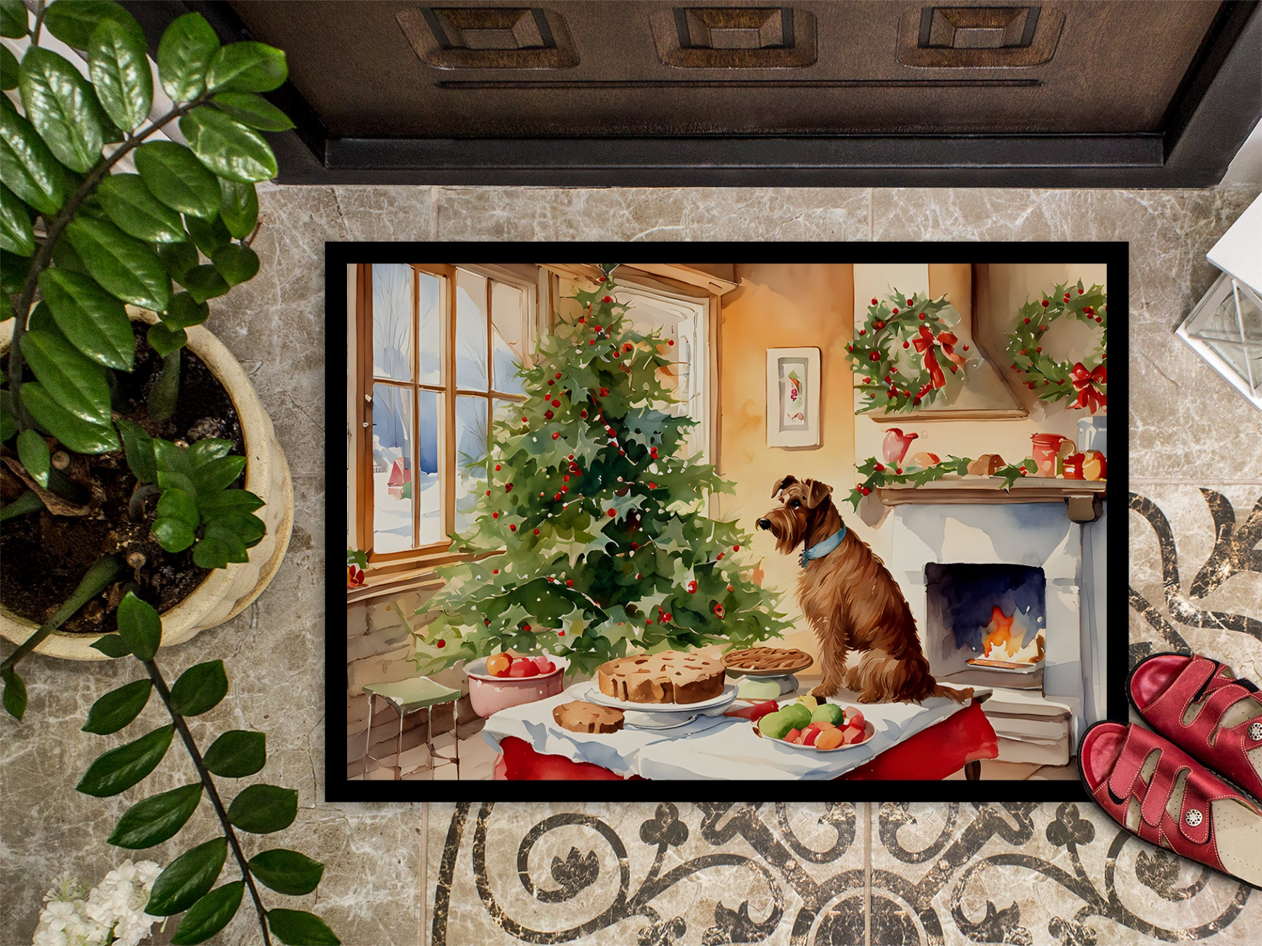 Doormat featuring breed specific Irish Terrier artwork. Celebrate Christmas with this Christmas Doormat. Welcome your guests in style with our Artwork Door Mat, designed to withstand almost any weather condition. This mat, measuring approximately 24 by 36 inches, is held together by durable black binding tape. Its top layer, composed of polyester felt, is dyed with the eye-catching image you see on the mat. A few layers below provide the mat with stability, while its rubber bottom is stamped to help prevent slipping and ensures safety. Our mat works wonderfully as both an indoor or outdoor door mat. For cleaning, simply hose it off with water or use a power washer - no need for any cleaner that produces suds. Avoid scrubbing with a brush, instead, opt for the vacuum on floor setting. Designed manufactured and printed in the USA, this mat is a perfect addition to your porch, outdoor kitchen, entryway, or any indoor space. Its unique design makes it a charming decorative rug that greets your guests and adds a stylish touch to your home decor.
