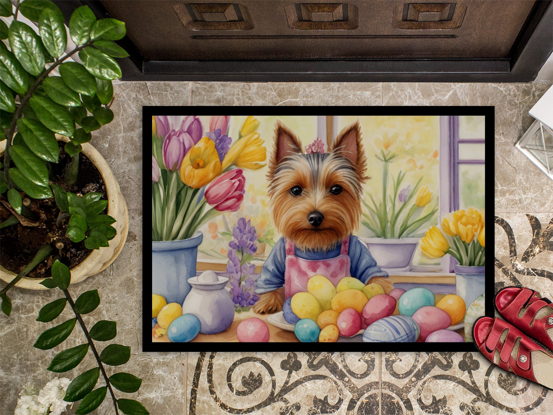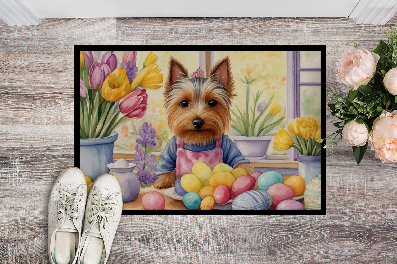 Decorating Easter Silky Terrier Doormat