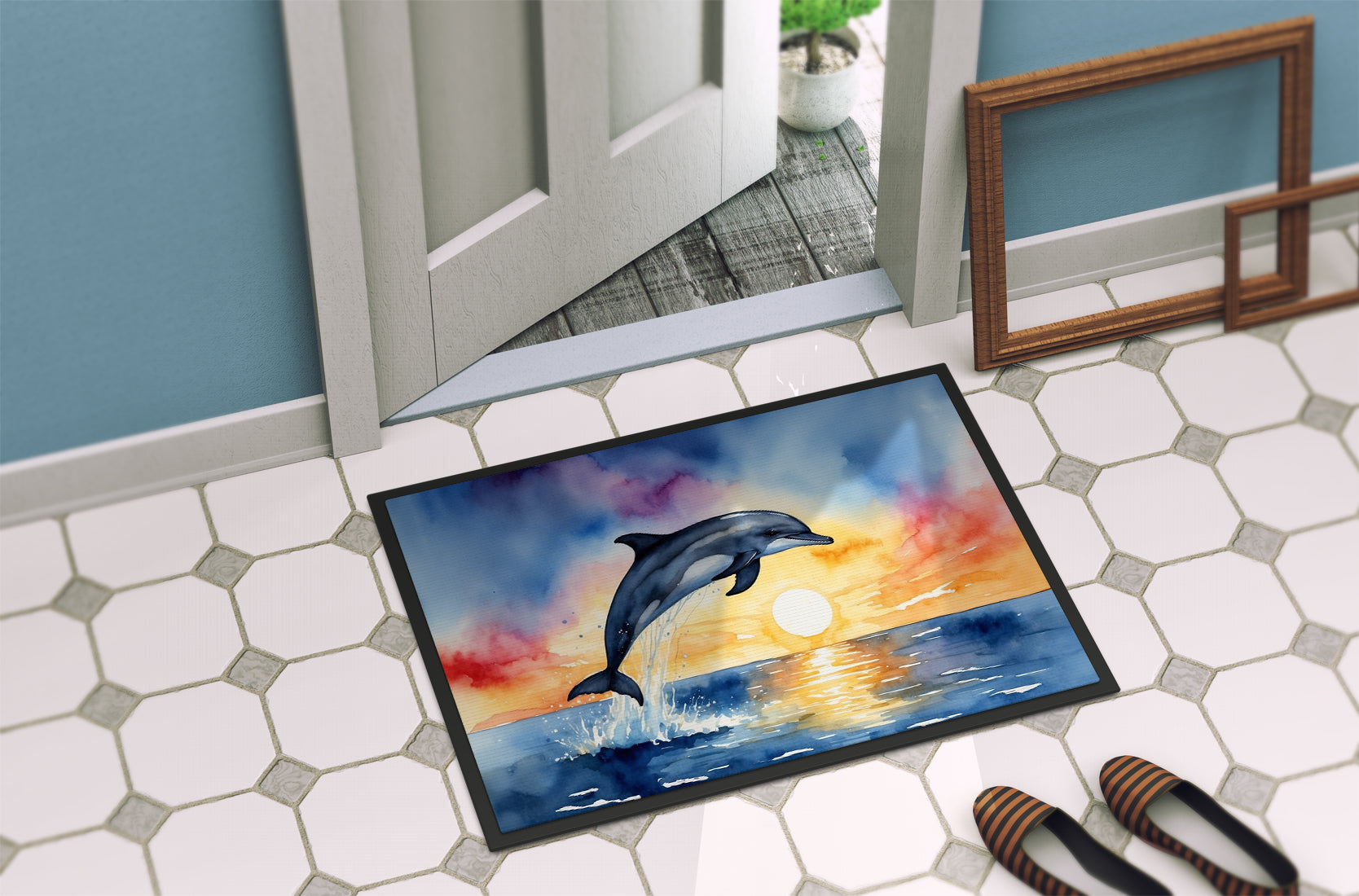 Dolphin Leaping at Sunrise Doormat