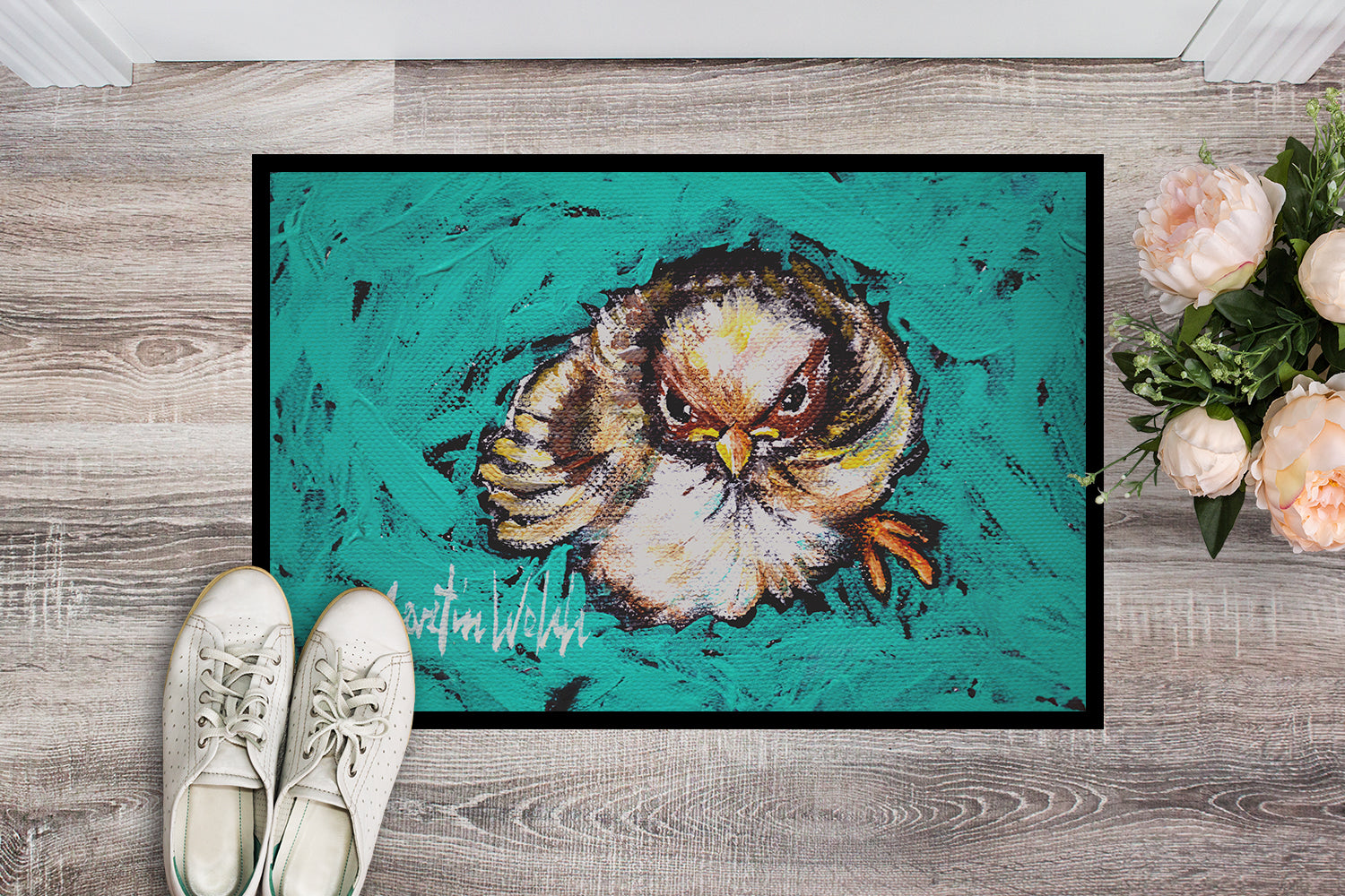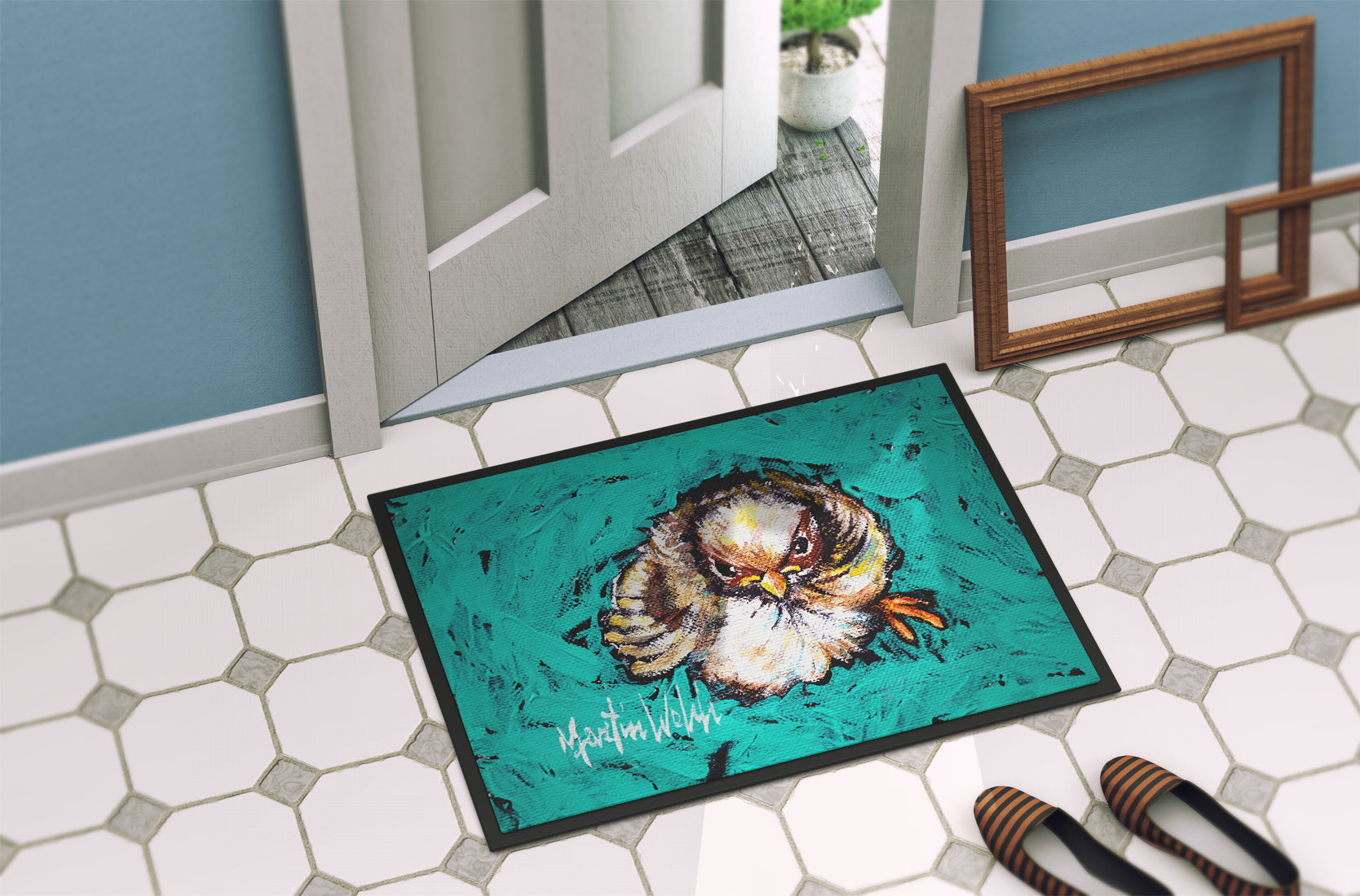 Welcome your guests in style with our Artwork Door Mat, designed to withstand almost any weather condition. This mat, measuring approximately 24 by 36 inches, is held together by durable black binding tape. Its top layer, composed of polyester felt, is dyed with the eye-catching image you see on the mat. A few layers below provide the mat with stability, while its rubber bottom is stamped to help prevent slipping and ensures safety. Our mat works wonderfully as both an indoor or outdoor door mat. For cleaning, simply hose it off with water or use a power washer - no need for any cleaner that produces suds. Avoid scrubbing with a brush, instead, opt for the vacuum on floor setting. Designed manufactured and printed in the USA, this mat is a perfect addition to your porch, outdoor kitchen, entryway, or any indoor space. Its unique design makes it a charming decorative rug that greets your guests and adds a stylish touch to your home decor.