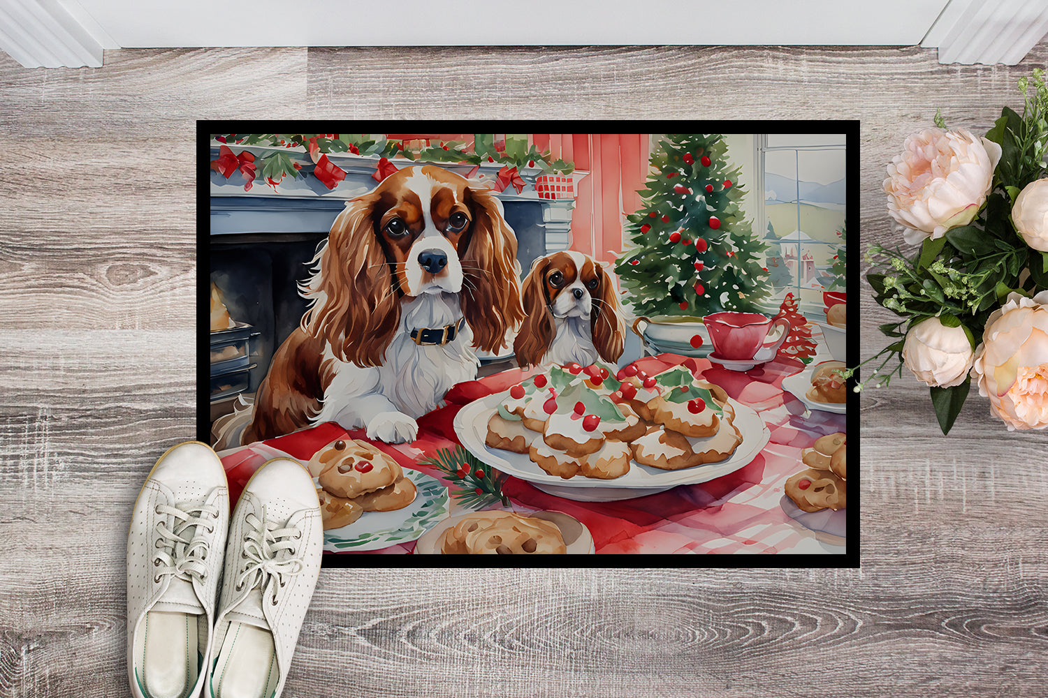 Doormat featuring breed specific Cavalier King Charles Spaniel artwork. Celebrate Christmas with this Christmas Doormat. Welcome your guests in style with our Artwork Door Mat, designed to withstand almost any weather condition. This mat, measuring approximately 24 by 36 inches, is held together by durable black binding tape. Its top layer, composed of polyester felt, is dyed with the eye-catching image you see on the mat. A few layers below provide the mat with stability, while its rubber bottom is stamped to help prevent slipping and ensures safety. Our mat works wonderfully as both an indoor or outdoor door mat. For cleaning, simply hose it off with water or use a power washer - no need for any cleaner that produces suds. Avoid scrubbing with a brush, instead, opt for the vacuum on floor setting. Designed manufactured and printed in the USA, this mat is a perfect addition to your porch, outdoor kitchen, entryway, or any indoor space. Its unique design makes it a charming decorative rug that greets your guests and adds a stylish touch to your home decor.