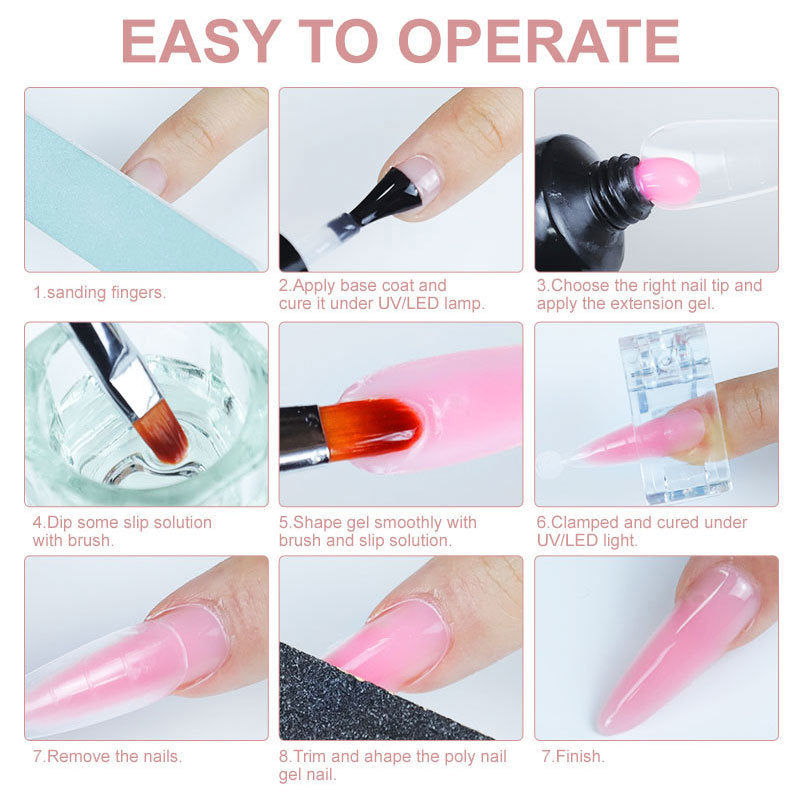 4. Apply poly nail gel to the tip of the false nail; smooth the gel with a nail pen and slip.
