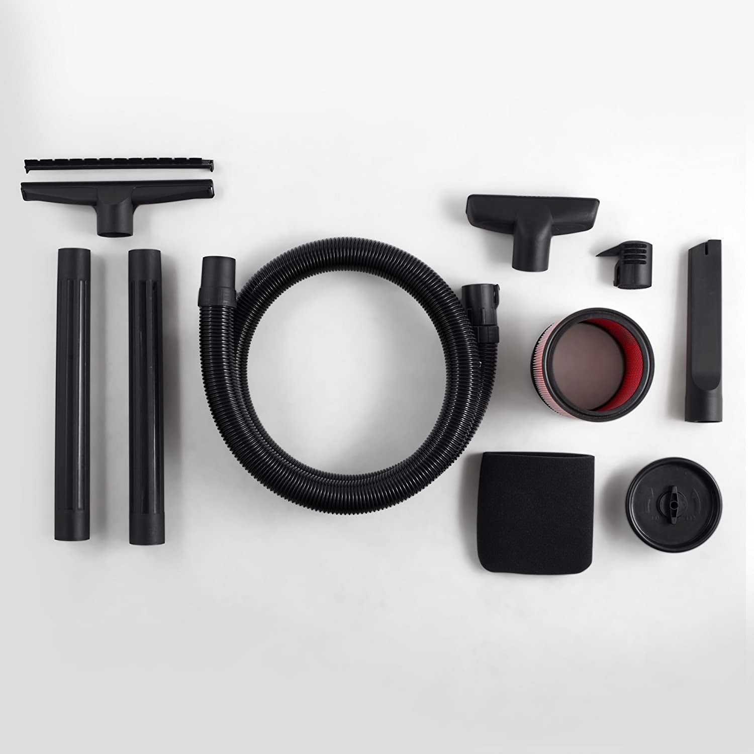 This Vacmaster Professional Beast Series 12-Gallon* 5.5 Peak HP† Wet/Dry Vac is a powerful high-performance vac designed to tackle the toughest cleanup projects—at the jobsite, around the shop, or in the garage.On-board hose, accessory, and power cord storage eliminates unneeded hassle and minimizes total storage space. A unique flat power head design allows you to conveniently store tools on top of the vacuum so they are easily accessible when needed. Over 27 ft. of cleaning reach (7’ hose and 20’ power cord) allows you to reach farther without unplugging the unit. Quickly control the power with the large dust sealed on/off switch. Heavy duty 360° swivel casters improve mobility on most surfaces. It also includes 9 accessories for nearly any task: 7 ft. x 2-1/2 in. kink resistant premium hose, utility nozzle, crevice tool, (2) extension wands, floor nozzle with squeegee & brush, fine dust cartridge filter, foam wet filter, and air & noise diffuser. Tank Size: 12 Gal., Tank Material: Polypropylene, Peak HP: 5.5, Voltage: 120V-60Hz, Amps: 10.5, Air Watts: 370, CFM: 143, Water Lift (In.): 60, Cord Length: 20 Ft., Hose Diameter: 7 Ft. x 2-1/2 In., Replacement Filters: VCFF, VCFS, VFF51, Dust Filter Bags: VDBL, VHBL, 7 Ft. x 2-1/2 In. Hose, 2 Extension Wands, Fine Dust Cartridge Filter, Foam Wet Filter, High Effiency Dust Bag, 14 In. Floor Nozzle, 8 In. Utility Nozzle, Air/Noise Diffuser.